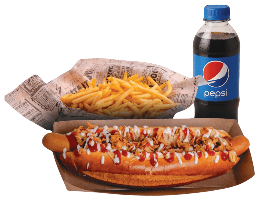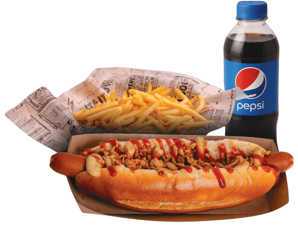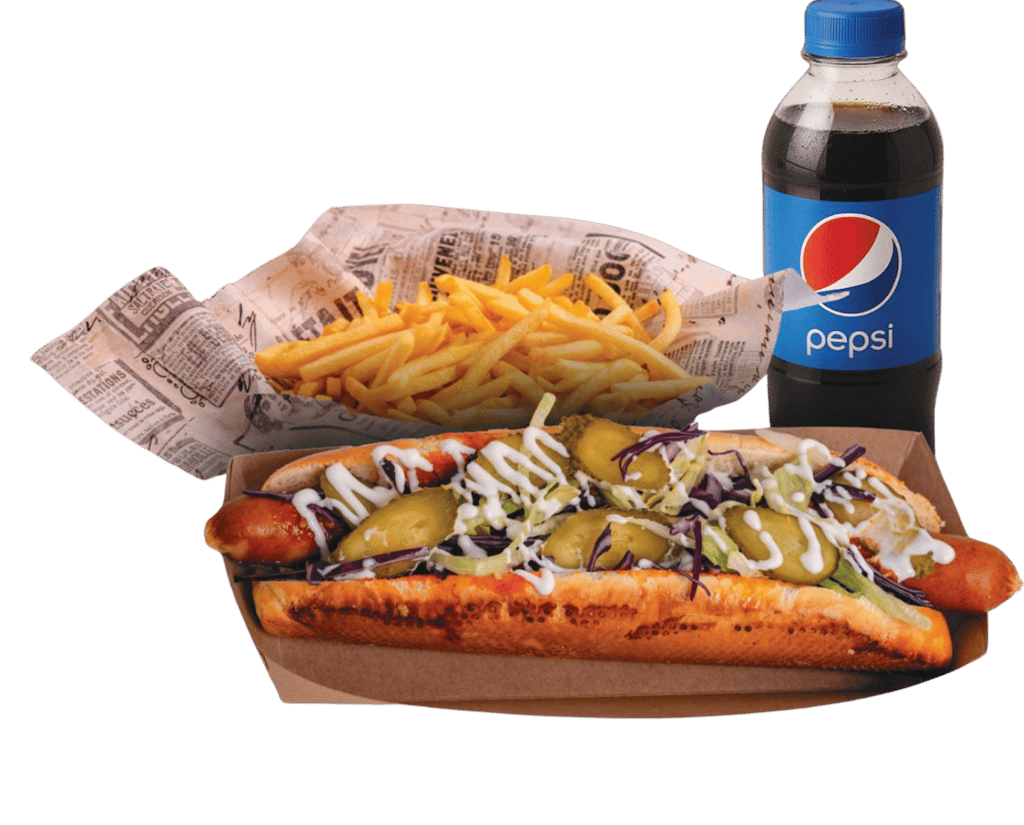 Klasika koja nikad ne razočara! Sočan pileći hot dog, hrskavi krumpirići i osvježavajuće piće – trio za svaki dan.